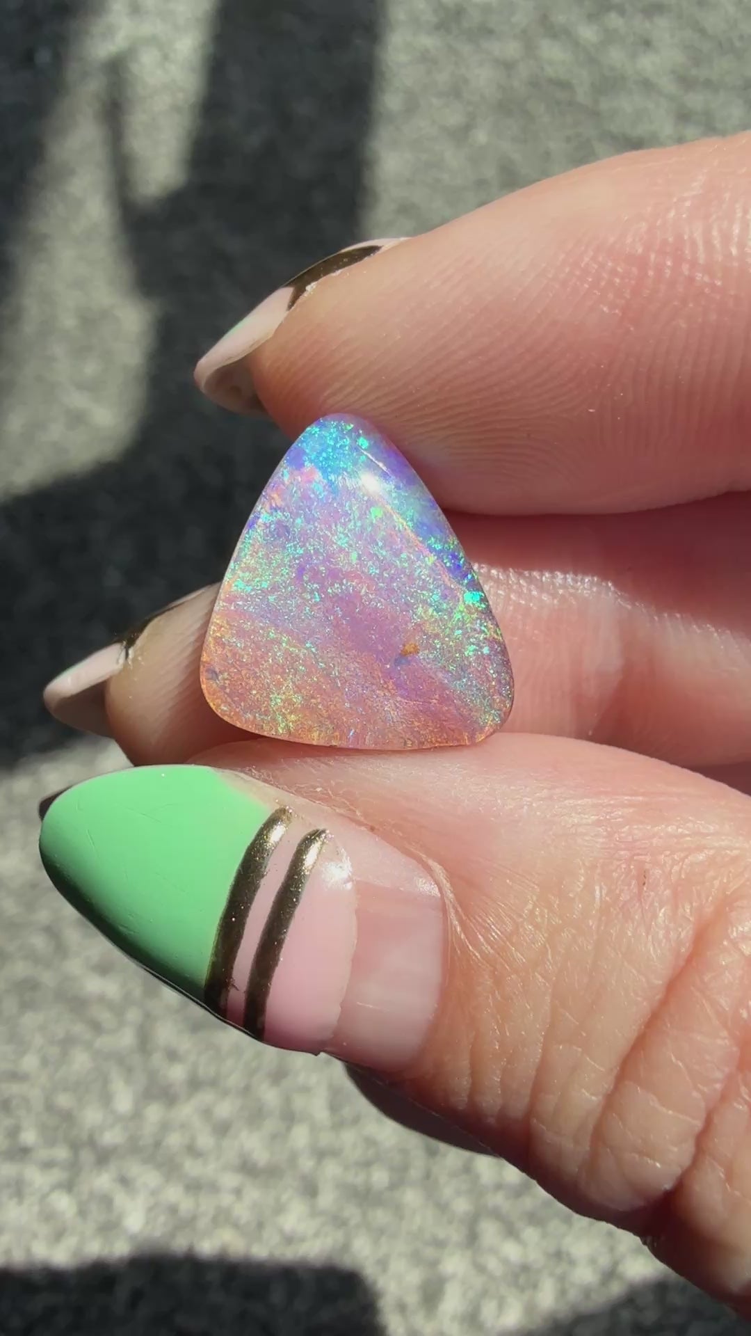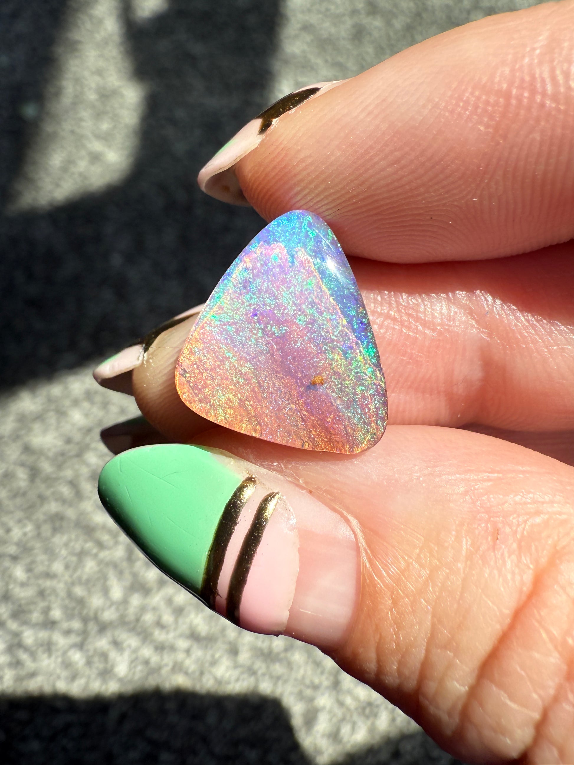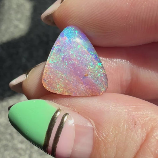 I’ve photographed this opal in both sunlight and shade to show its natural play of colour. Please note that opal colours can appear slightly different depending on lighting and screen settings.