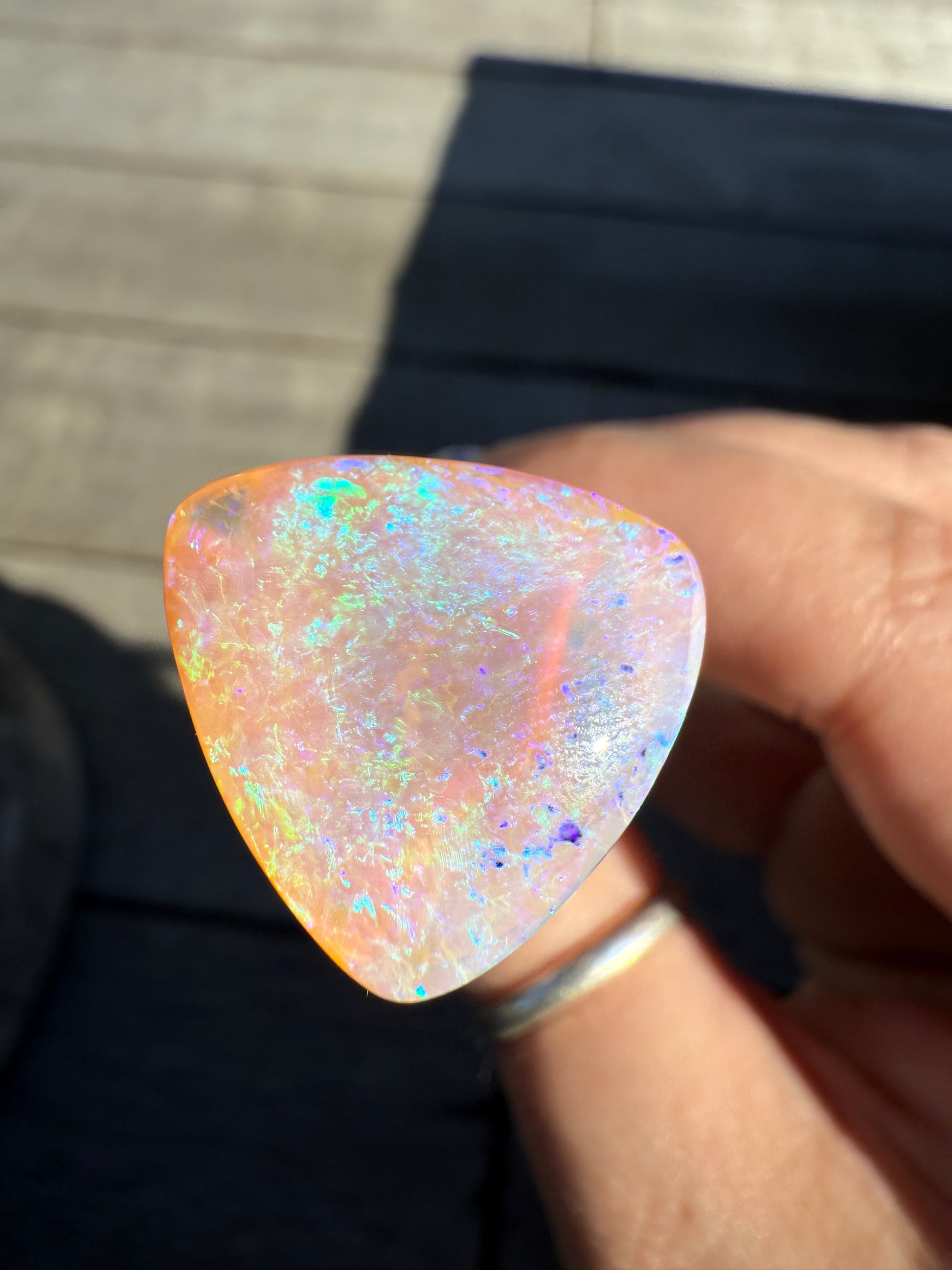 I have tried to give a good representation of the opal in the sunlight and in the shade but please note the colours may vary slightly to what has been photographed.
