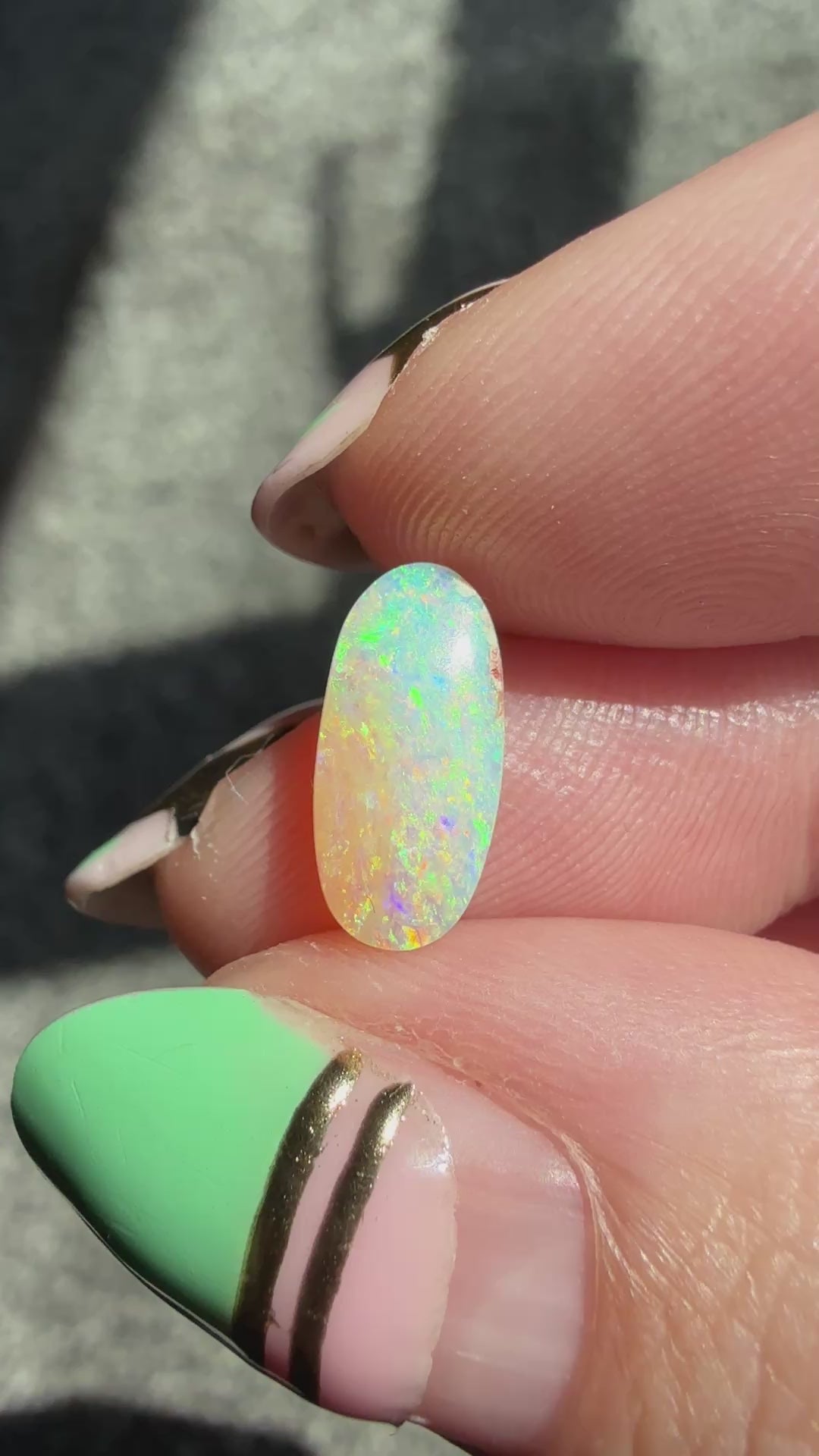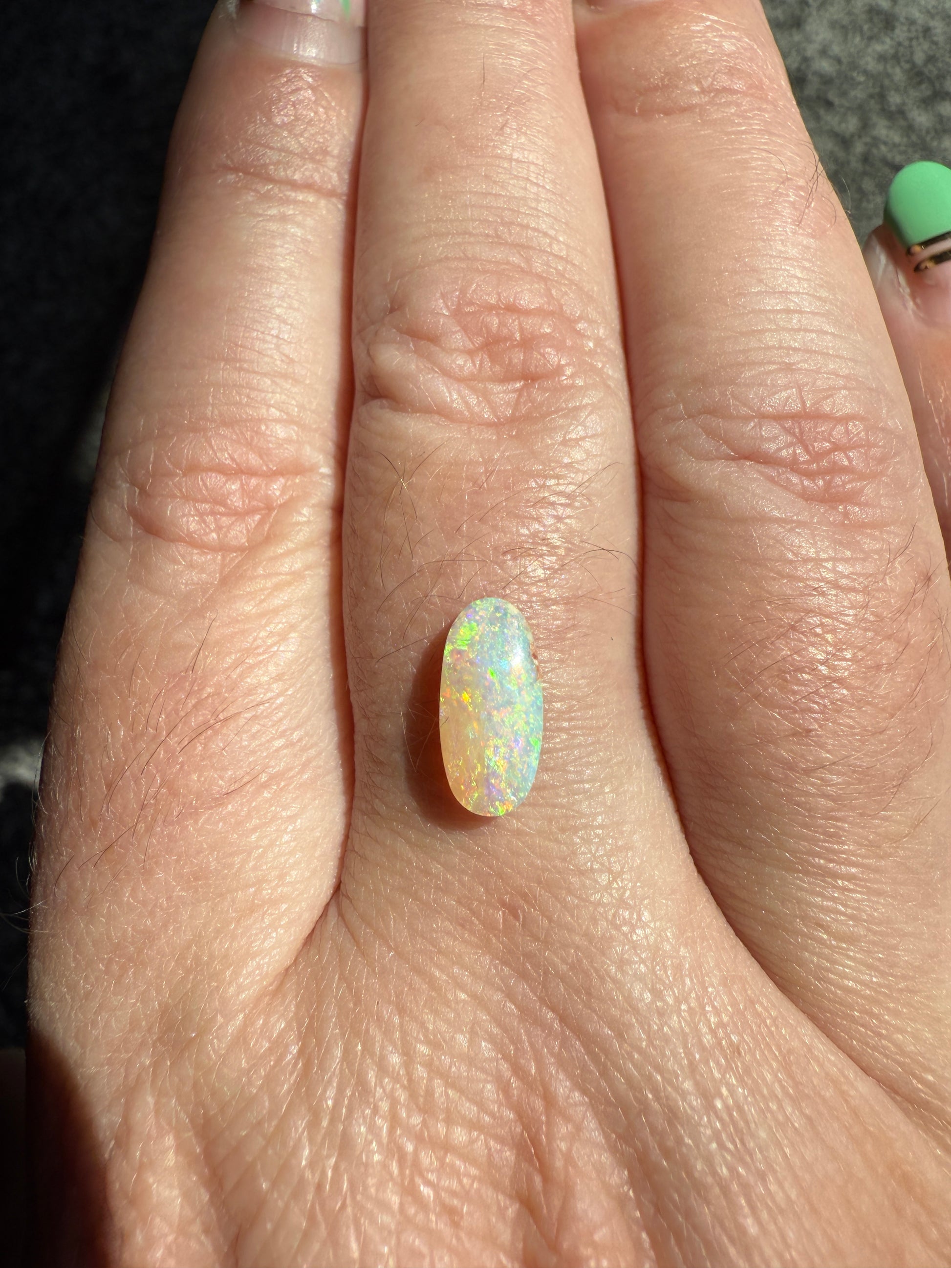 I’ve photographed this opal in both sunlight and shade to show its natural play of colour. Please note that opal colours can appear slightly different depending on lighting and screen settings.