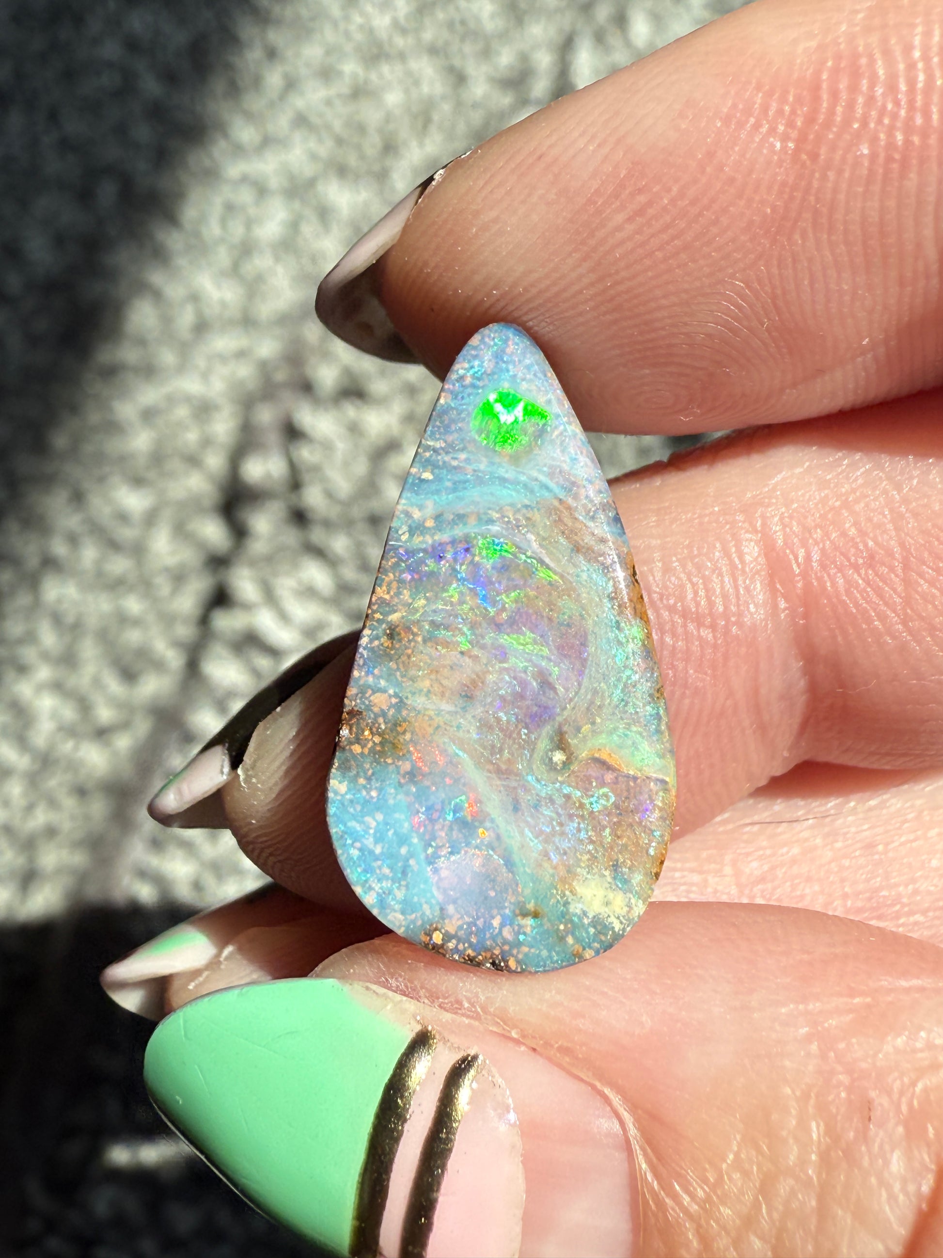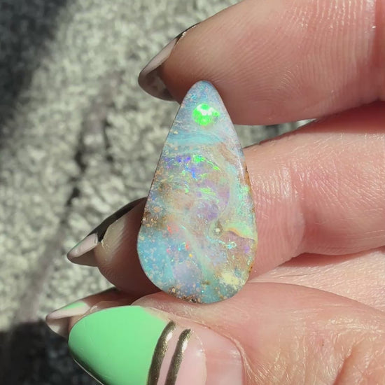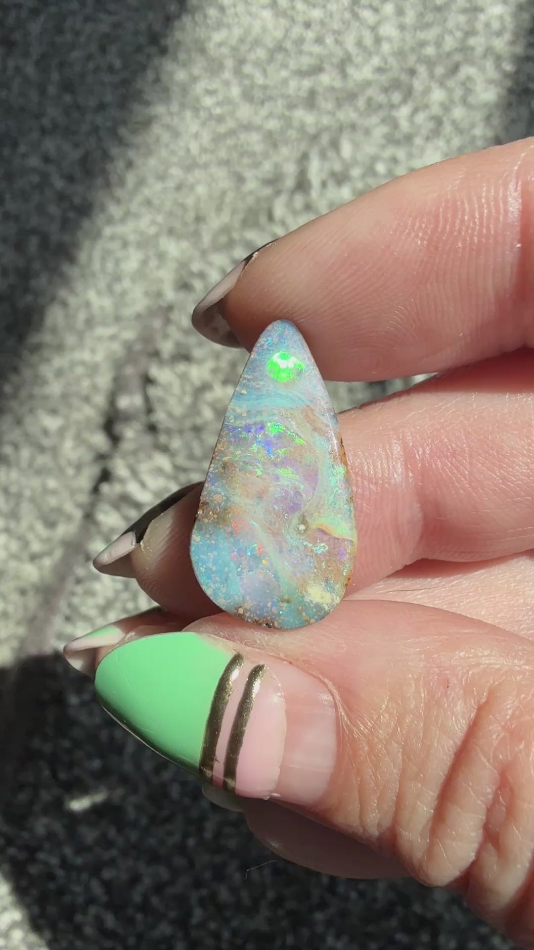 I’ve photographed this opal in both sunlight and shade to show its natural play of colour. Please note that opal colours can appear slightly different depending on lighting and screen settings.